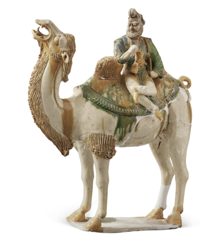三彩骑驼奏乐,唐,通高 50.1 厘米,长 40.5 厘米,2002 年西安市长安区郭杜镇唐墓出土,西安博物院藏