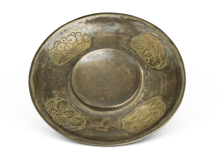 宝相花银茶托,唐,直径7.2厘米,1977年西安市文物管理委员会征集,西安博物院藏