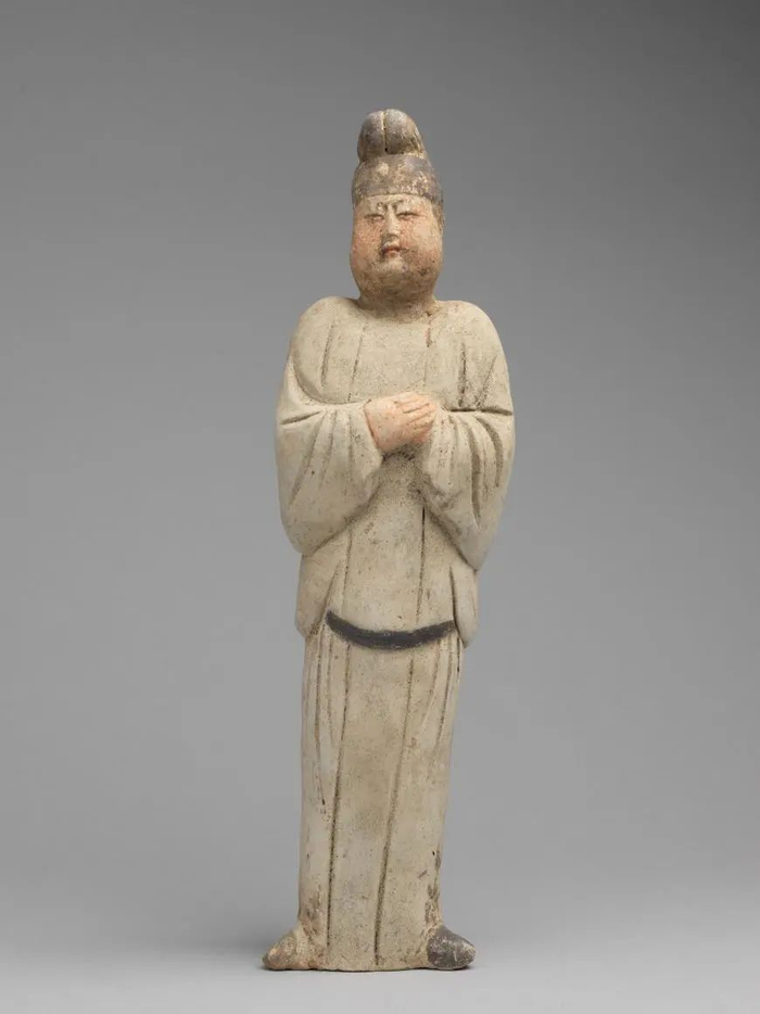男装拱手女立俑,唐,高35厘米,宽10厘米,2016 年西安市文物局稽查队移交,西安博物院藏