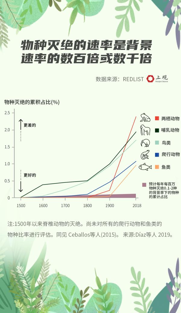 众多研究表明,地球物种正在加速灭绝。联合国发布的《2020人类发展报告》指出,自二十世纪以来,各类动物的灭绝速率大幅提升,已经达到了自然灭绝速率的数百倍甚至数千倍。