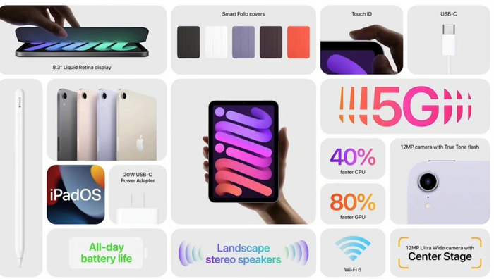 新一代iPadmini则带来了巨大改进,苹果也强调这是iPadmini目前为止最大的一次改变。外观上,全新iPadmini采用8.3英寸Liquid视网膜显示屏,搭载A15仿生芯片、电源键集成TouchID,采用USB-C接口,同时兼容第二代ApplePencil等。