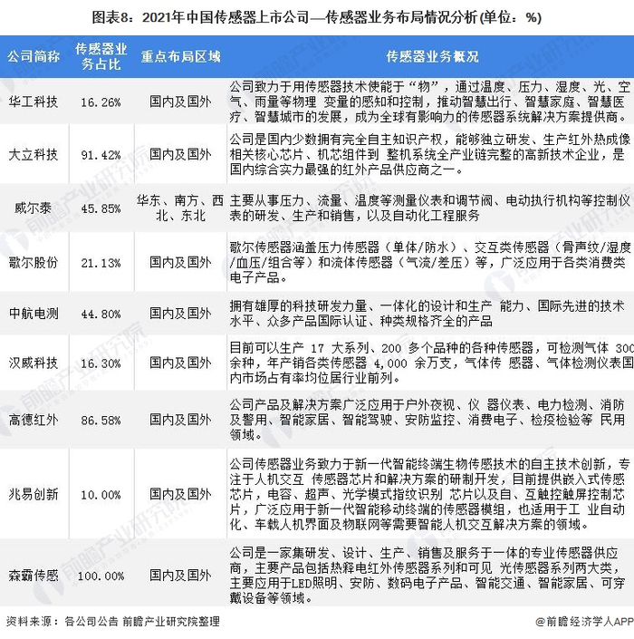 【最全】2021年传感器行业上市公司全方位对比(附业务布局汇总、业绩对比、业务规划等)