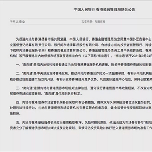 继跨境理财通颁布试点细则后,互联互通又迎来新的重磅消息!