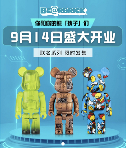 2001年,日本MEDICOM TOY玩具制造大厂推出了创意玩偶——BE@RBRICK。BE@RBRICK拥有圆乎乎的熊耳朵,身体则沿用乐高玩具Kubrick(积木人)的造型,设计师在空白玩偶模具上即兴发挥,使其充满潮流嘻哈气息。20年来,BE@RBRICK品牌不止致力于积木熊新颖的造型、细致认真的涂装,还与全球各地的艺术家、设计师、流行品牌、明星等合作,推出限量版、特别版,形成横扫各大圈层的潮流魅力,深受全球时尚人士喜爱。