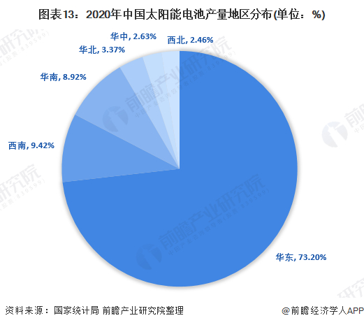 1、 区域竞争:太阳能电池制造集中在华东地区