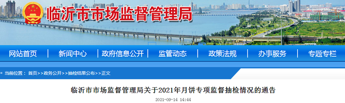 中国质量新闻网讯 近日,山东临沂市市场监督管理局发布关于2021年月饼专项监督抽检情况的通告。