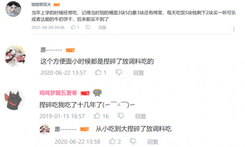 白象大骨面是方便面里元老级的产品,是白象食品于2003年推出的国内首款骨汤方便面。白象食品也凭借这一创新成为中国骨汤方便面品类开创者和领导品牌,在方便面大发展时期成功逆袭为行业黑马。而从另一方面来说,白象大骨面陪伴了这一代年轻人成长。有网友评论到:“当年上学的时候经常吃,记得当时别的桶面3块5白象3块还有榨菜,每天吃饭5块钱剩下2块买一听可乐或者达能的牛奶饼干,后来都买不到了”、“这个方便面小时候都是捏碎了放调料吃的”、“捏碎吃我吃了十几年了”......不仅体现了白象方便面的高性价比,还引发了网友满满的儿时回忆,同时还安利了白象大骨面的其他吃法。