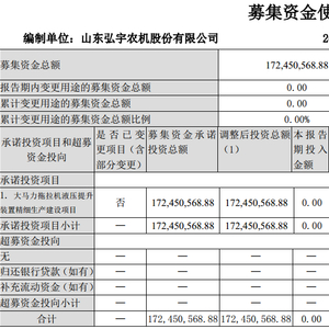 多年来,弘宇股份IPO募集的2.13亿元资金始终未用。招股书显示,弘宇股份计划将募集资金全部投入“大马力拖拉机液压提升装置精细生产建设项目”,项目建设周期为2年。两年后,该公司于2019年9月“延长(项目)建设周期”。到了2020年8月25日,该公司却宣布,募集资金投资项目暂缓实施。彼时公告显示,截至2020年7月31日项目的实际投入金额为0元。