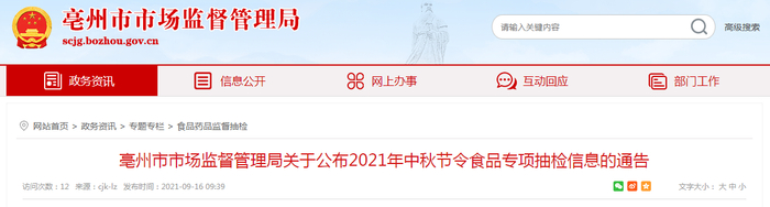 安徽亳州市市场监管局公布2021年中秋节令食品专项抽检信息