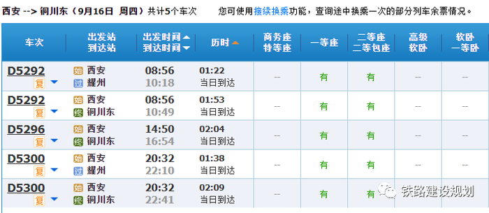 “复兴号”动集动车组列车从西安始发,沿途经过阎良、富平、庄里、耀州,最终到达铜川东站。西安局集团公司根据目前客流实际,每日开行3对西安与铜川间往返的“复兴号”动集动车组(西安~铜川东D5292/89/92 D5295/4/5次、D5300/297/300 D5291/0/1次、D5296/3/6 D5299/8/9次),全程最快旅行时间1小时53分钟。后期,还将根据客流情况动态增加开行列车对数,服务好两地人民出行。具体列车车次及时刻如下:
