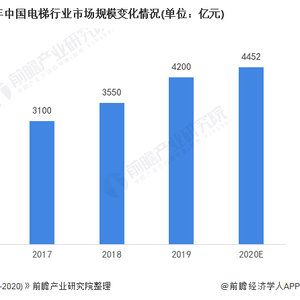 根据《中国电梯行业商务年鉴(2019-2020)》数据,2015-2018年,我国电梯市场规模不断扩大,其中2018年我国电梯市场规模突破3500亿元,约为3550亿元,且2019我国电梯行业市场规模超4200亿元。中国电梯协会会长李守林参观虏克电梯时提到,2020年中国电梯销量增长预计在5%~8%之间,保守估计2020年中国电梯行业市场规模超过4400亿元。