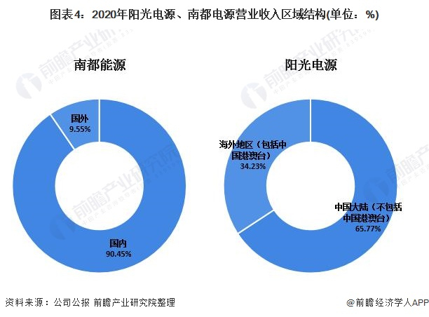 从储能业务布局区域来看,南都能源和阳光电源在国内和国外均有布局。