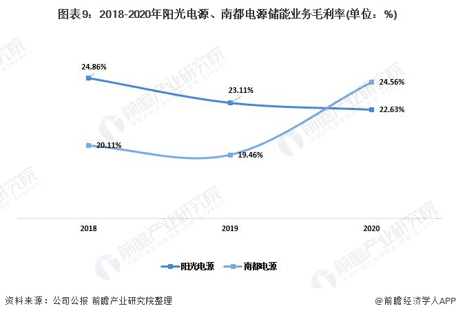 从储能业务的毛利率来看,2018-2019年阳光电源储能业务毛利率高于南都电源,但2020年南都电源毛利率提升,超越了阳光电源。