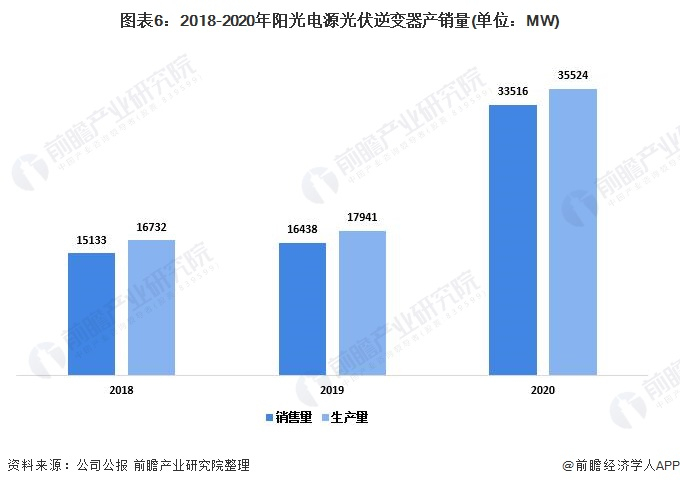 2020年阳光电源储能产品销量主要是光伏逆变器,2020年公司光伏逆变器业务量大幅增加,带动了光伏逆变器销量的增长。2020年公司光伏逆变器销量33516MW,同比增长103.89%。