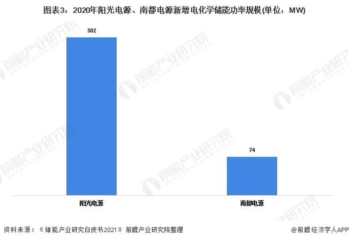 根据《储能产业研究白皮书2021》,2020年中国新增投运的电化学储能项目中,阳光电源功率规模排在首位,装机规模约为302MW;南都电源排在第七位,装机规模约为74MW。
