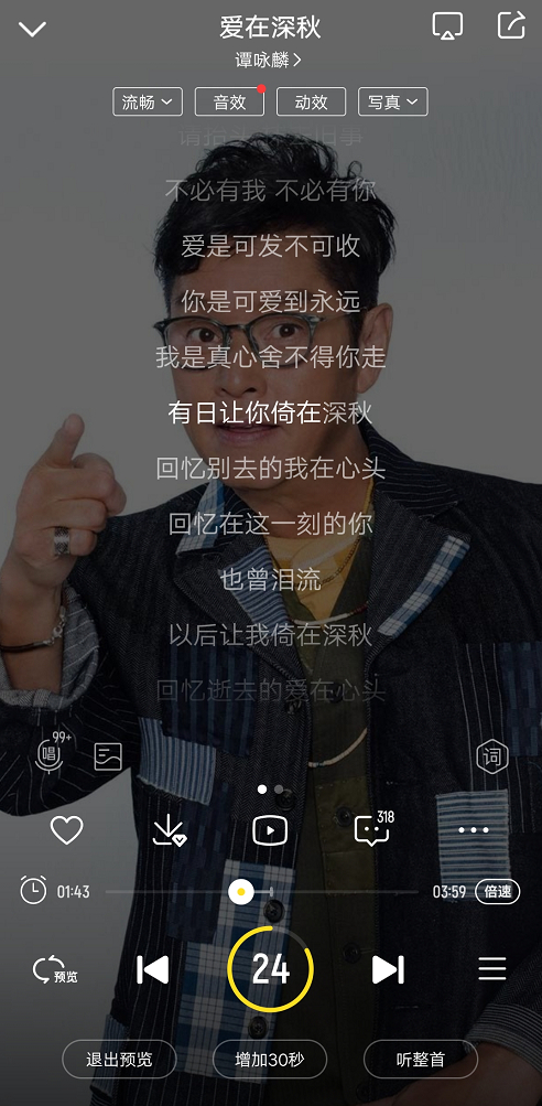 在听歌过程中,也可以轻松选择这一模式:在播放界面的左下角,直接点击“预览模式”,便可进入。
