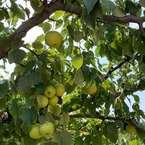 同属军庄镇的孟悟村也是京白梨的主产村,走进园中,能看到一个个圆形的梨子挂在枝头,等待采摘,但拨开叶片,能看到部分梨子带有轻微的黑色伤痕,这些都是冰雹所致留下的痕迹。在园中的工作间,几位村民正在对鲜果进行挑选和打包,准备发往北京市区。“今年园里梨子的产量减少了近五成,要从里面挑出没有损伤的,果形好的。”园区负责人曹咏梅告诉记者,今年春天梨树授粉时受到沙尘影响,不少花瓣出现枯死的情况,导致产量减少,8月的冰雹天气又打坏了不少果子。“太可惜了,这些打坏的果子只能送去榨梨汁或者做秋梨膏了,小酸梨可以用来做韭菜花。”