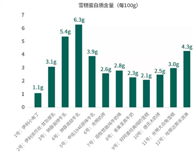 北京营养师协会理事、清华大学医学院硕士顾中一认为,一般100g牛奶里含蛋白质大约3.2g,所以如果一款雪糕/冰淇淋蛋白质含量能达到这个水平,就已经是很不错的了。