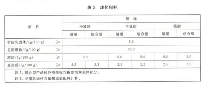 冰淇淋国家标准理化指标