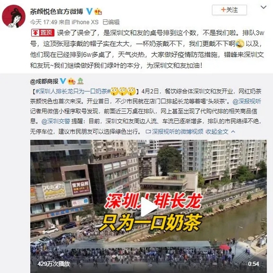 要知道,今年4月2日开业后,茶颜悦色在深圳的快闪店曾“引爆”了深圳,引发数万人排队买奶茶,“黄牛”代购费高达500元,当日,连交警都出来对部分道路采取交通管制措施。