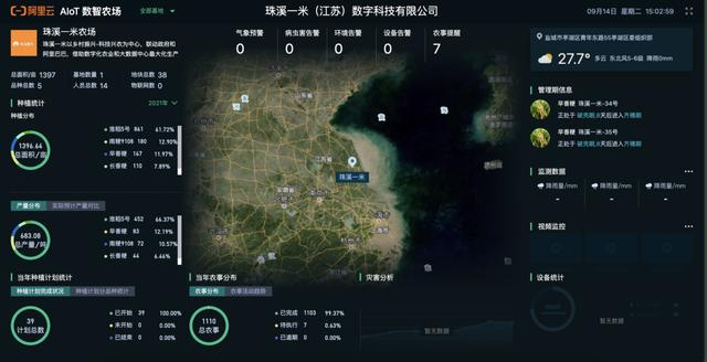 在盐城市盐南区,依托数字化智能管理平台和物联网技术,技术人员不需要出门就能对1400亩水稻地进行灌溉。利用智能一体杆上的高清摄像头,技术员能实时查看田间地头情况,通过钉钉下发生产任务。每天大量生产数据被记录沉淀,传统农民的种植经验在转化为“种植模型”,过去水肥使用靠经验,今天靠算法。