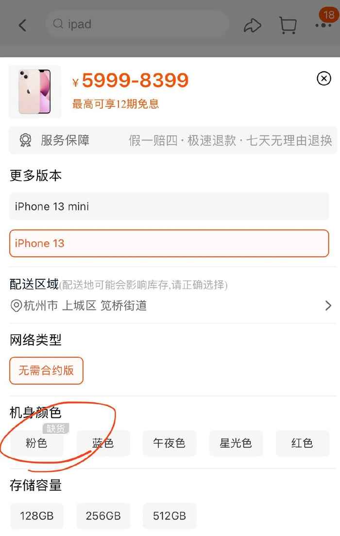 之前在天猫平台预订中最受欢迎的粉色款果然走俏,iPhone 13 系列第一批货粉色款不到3分钟内就被疯抢一空!