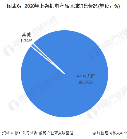从销售区域来看,上海机电的主要市场是中国市场,2020年中国大陆市场营业收入为231.04亿,占总营收的比重为98.76%;其他地区的营收占比较小,仅为1.24%。