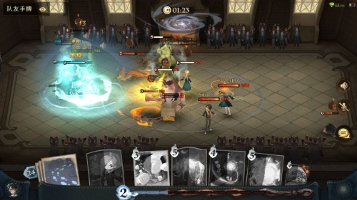 同时,玩家在战斗模式中,处于一个可自由位移的对战平台中。巫师通过卡牌召唤出来的生物并非即时生效,而是生成实体交互攻击,还可以从各个方向对敌方发起进攻,巫师作为一个人物单位,自然也能通过移动调整自己的位置,从而达到躲避技能,走位释放技能,预判轨迹,甚至是“R闪”(释放某些poke类技能可以通过闪现微操打出出其不意的,具有极高观赏性的操作)。在《哈利波特:魔法觉醒》这个RPG卡牌游戏中,能将这些在MOBA上才能呈现的精彩操作精彩表现出来。