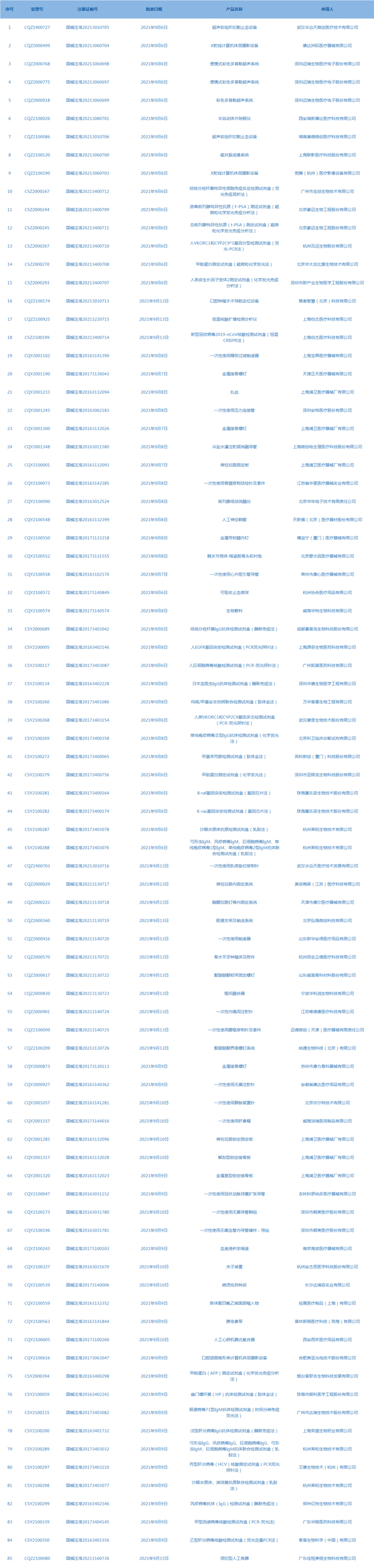 3.国家药监局发布5期医疗器械批准证明文件(准产)待领信息,共包括85个受理号,涉及深圳迈瑞生物医疗电子股份有限公司等企业。(截至9月16日)