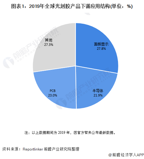 根据法国知名调研机构-Reportlinker于2020年7月公布的数据显示,2019年,全球光刻胶在半导体领域的应用比例为22%: