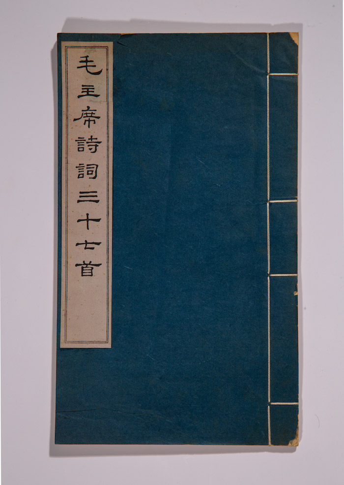 此外,展厅中亦呈现了《毛主席诗词》和《毛主席诗词三十七首》。1963年版的诗词集是毛泽东亲自参与编订的、带有总结性的,具有特殊的意义。而文物出版社以集宋版书字体出版了《毛主席诗词三十七首》,而人民文学出版社的《毛主席诗词》,内容与文物出版社一样,收录了37首诗词,封面选用了毛泽东喜爱的梅花图样。