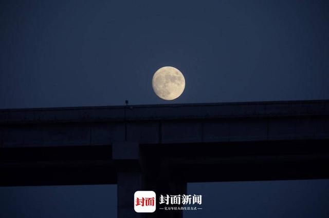 今天是中秋假期第一天,黄昏时分,一轮明月徐徐升起。每逢中秋节气,成都天气状况多不佳。今天的明月给大家带来惊喜。封面新闻记者 杨涛 摄影报道