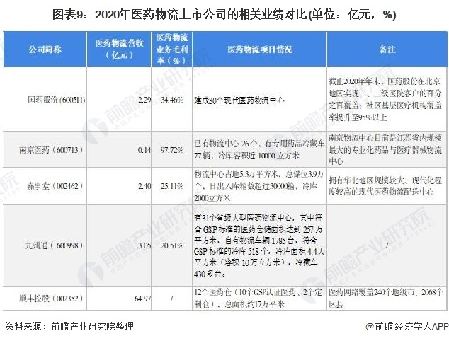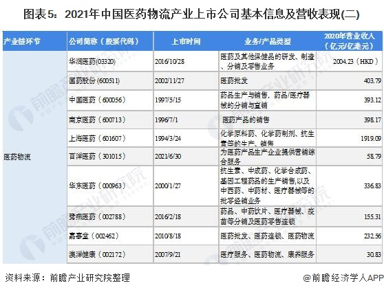 原标题:【最全】2021年医药物流行业上市公司全方位对比(附业务布局汇总、业绩对比、业务规划等) 来源:前瞻产业研究院