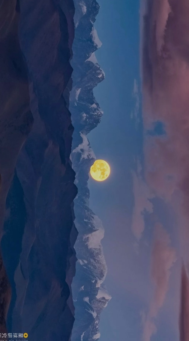 四川贡嘎山,月亮悄然升起于山间,摄影师@孙祺