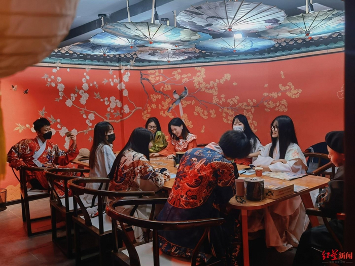 “我已经玩过了,今天带几名同学前来体验。”10点过,几位青年玩家有说有笑走入店内,他们是成都某高校大四的在校生,中秋节没有出远门,选择到春熙路体验剧本杀,“一定要体验那种悬疑的剧本才过瘾!”一位从未玩过剧本杀的女生满心期待。