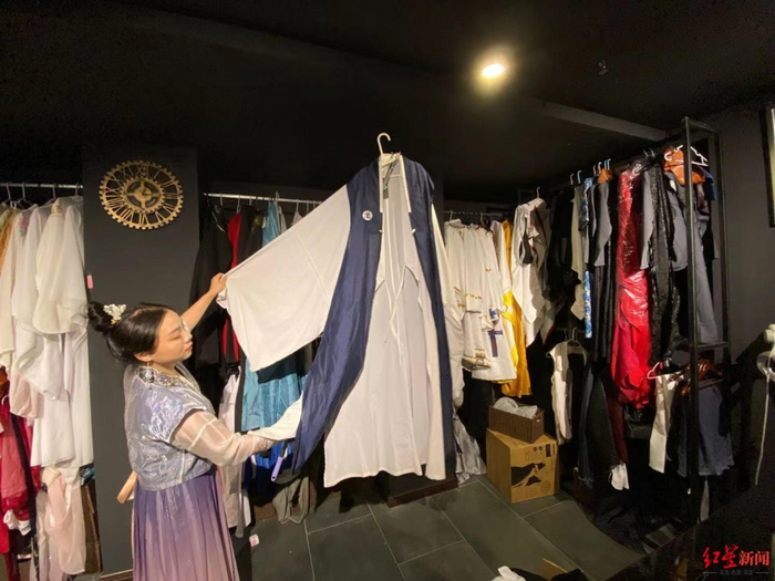 在成都市成华区萌想星球107文创园内,“环球魔力沉浸式剧场”正在吸引一些对剧本杀消费体验感要求更高的青年群体。9月19日下午,红星新闻记者在此采访发现,不时有穿着剧服的青年人步入与剧情对应的房间。“目前,我们店内拥有上千套崭新服装,许多甚至是难以再贩的限定版。”在店面的服装区,“环球魔力沉浸式剧场”创始人李咏向红星新闻记者介绍她运营剧本杀体验馆的理念。