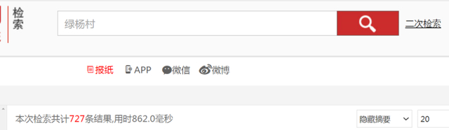 记者使用内网分别查询上海报刊媒体当中出现“绿杨邨”和“绿杨村”关键词的相关报道,发现采用“绿杨邨”的报道有121篇,采用“绿杨村”的报道有727篇。其中,有一篇文章当中,既出现了“绿杨邨”,又出现了“绿杨村”。