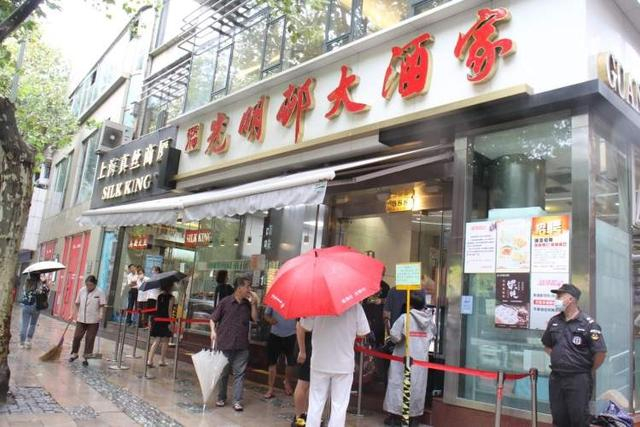 丁迪蒙:这两家都是老店,在上海已经经营了几十年。经过这么多年的打磨而依然可以在上海立足,说明了他们在上海人心目中的地位。因此,原先住在周边的上海人也许早已动迁或搬迁到了上海的中外环区域,但还是会牵记他们小时候的口味,时不时会回到这片生养他们的土地,即使是冒着暑热刮风下雨,也依然愿意排几个小时的队去购买(见下图)。说到底,这已经不单单是喜爱店里的食品,更是一种怀旧的文化心态,正如同去了海外多年的上海人,回到上海最喜欢的还是泡饭一样。