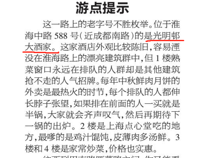 同样是新民晚报,2008年2月5日的旅游版面,刊发的“春节申城游玩方案”,在介绍“淮海路经典老上海”版块,用的是“上海光明邨大酒家”的字样。