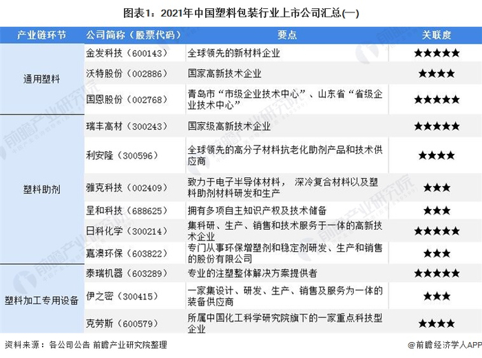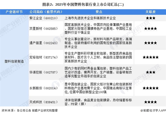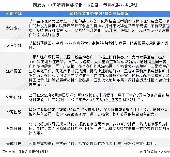原标题:【最全】2021年塑料包装行业上市公司全方位对比(附业务布局汇总、业绩对比、业务规划等) 来源:前瞻产业研究院
