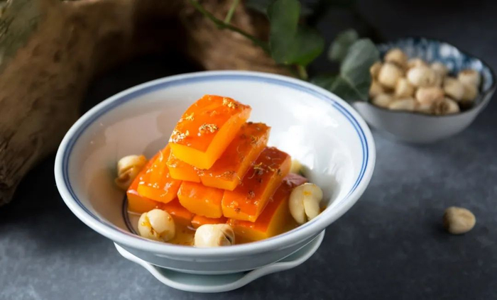 福州芋泥是闽菜中传统甜点,在宴席中压轴登场。芋泥表面覆着一层猪油,封住了热气,一口吃下异常烫嘴,细、沙、软、润,将芋头的口感发挥到极致,是秋冬绝佳的饭后甜点。