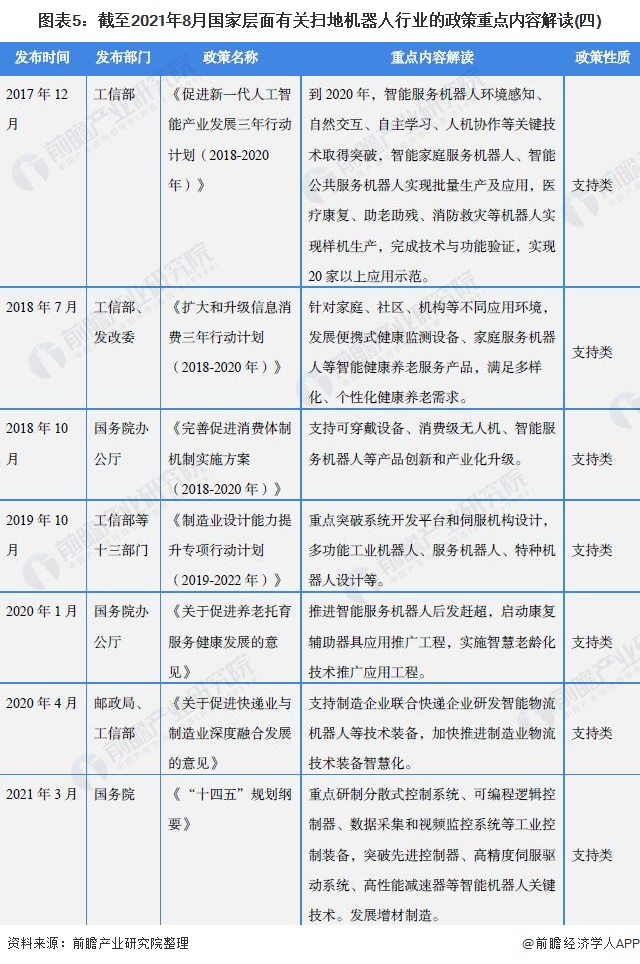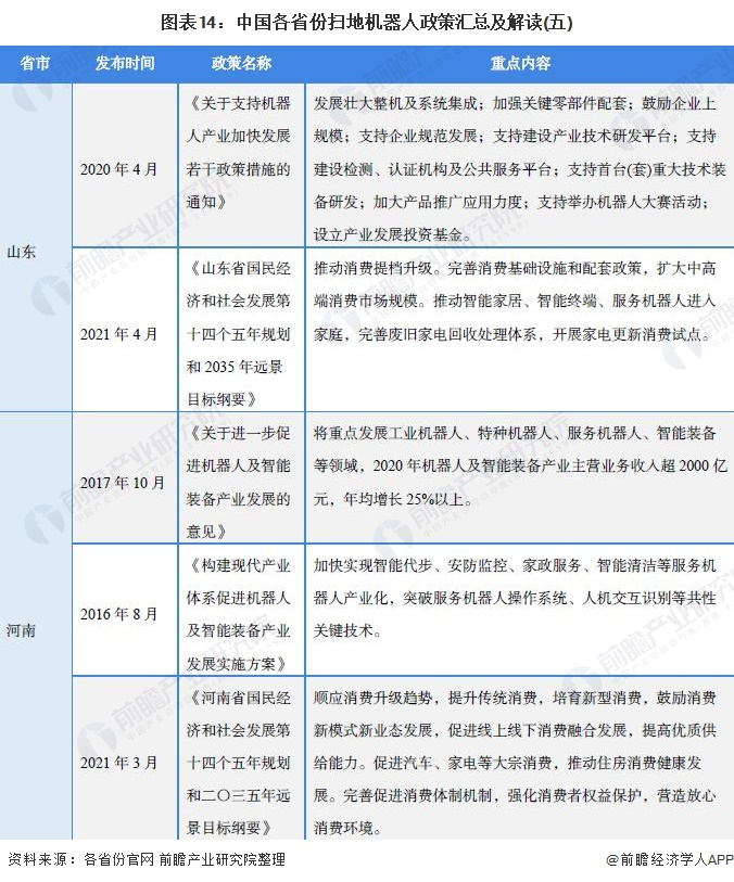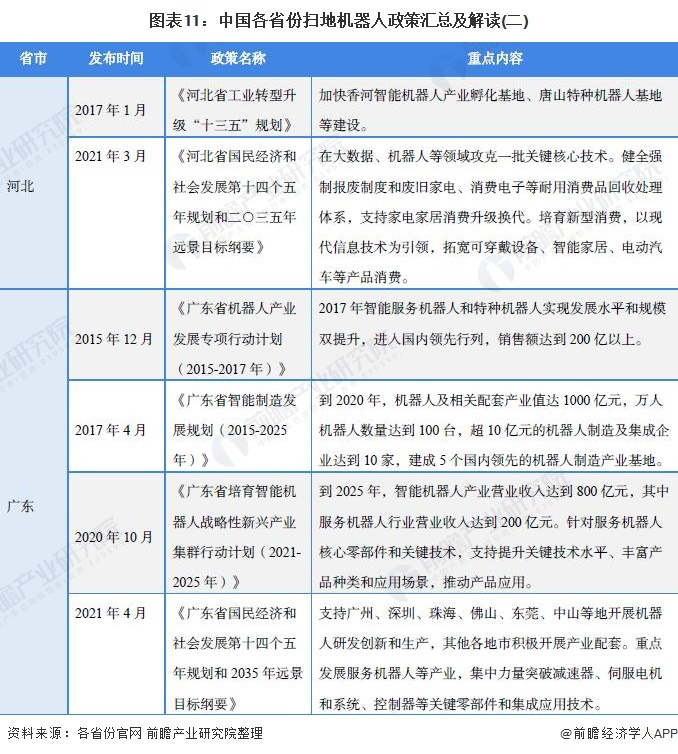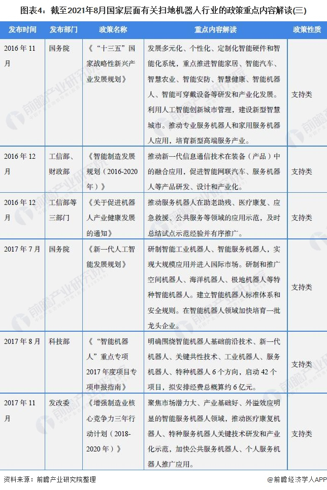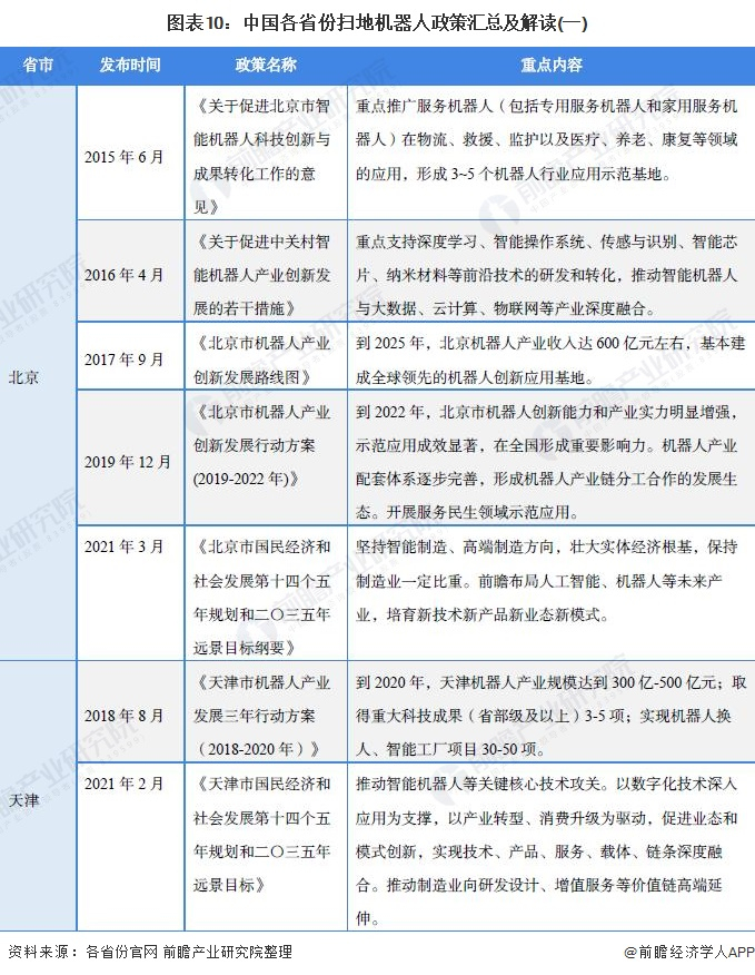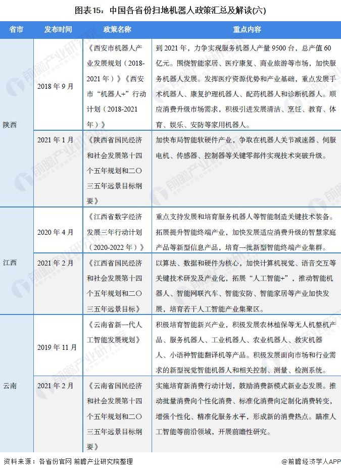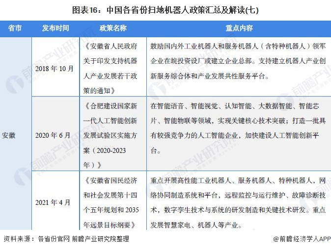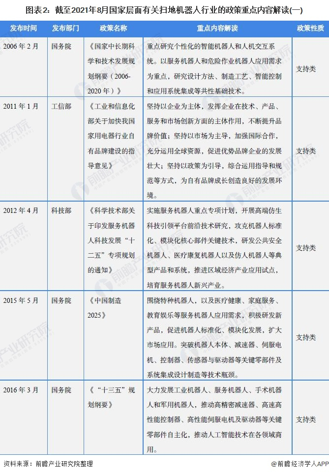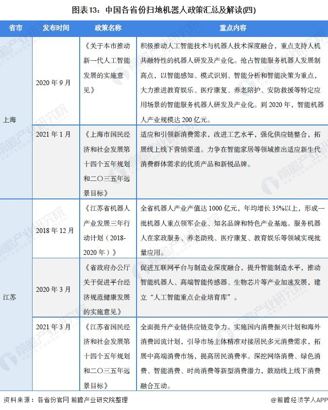 原标题:重磅!2021年中国及31省市扫地机器人行业政策汇总及解读(全)大力推动创新和产业化 来源:前瞻产业研究院