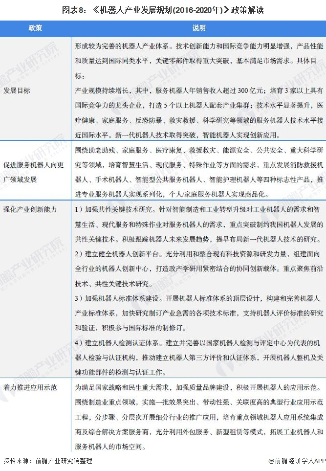 2016年4月27日,工业和信息化部、发展改革委、财政部印发《机器人产业发展规划(2016-2020年)》,该规划对2016-2020年服务机器人行业的发展目标和重点任务提出了详细的要求。