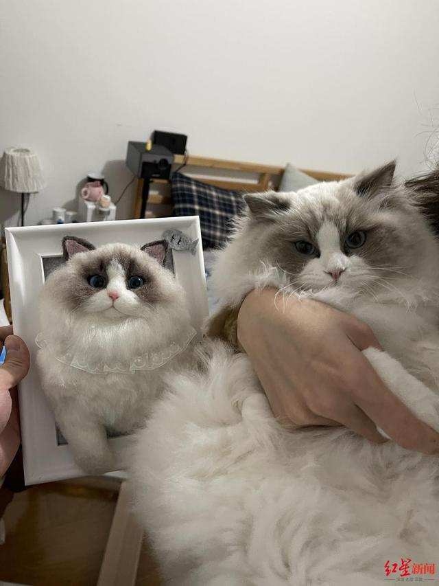 在这个人身上,她找到同为养宠人的共鸣,同时认为“这或许也是一个机会”。从那以后,康琴坚持做羊毛毡相框定制服务已有8年。