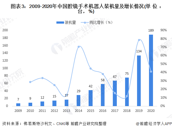 腔镜手术机器人数量爆发增长,2020年累计达到189台