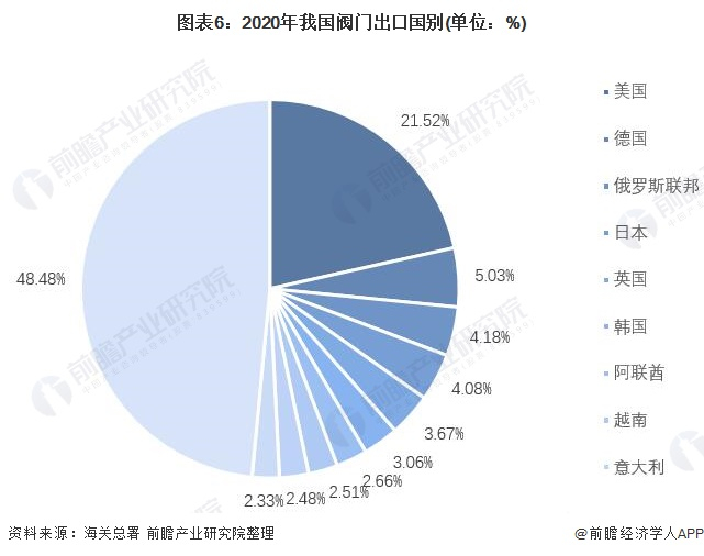 2021年中国阀门制造行业出口现状及区域市场分析 出口价格震荡上行、美国市场一枝独秀