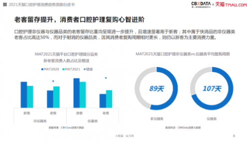 线上口腔市场的消费规模也快速扩大,数据显示天猫平台占据淘系平台的主导,其占比逐年提升,2021年已超过70%,其中,购买人数的增加,以及购买频次、笔单价的增长是主要的驱动因素。