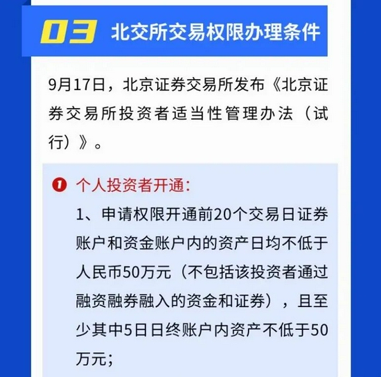 北交所门槛大降投资者开通权限热情飙升?开通权限高峰或在北交所开市前夕,部分券商还设置额外要求