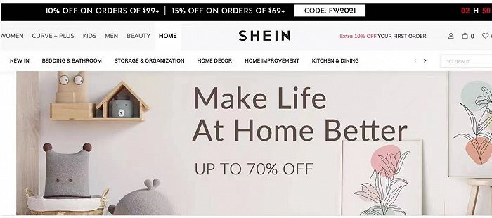 Shein网站上开始上架家居类产品
