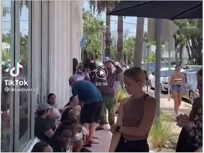 Shein迈阿密快闪店外等候的女孩们,视频来自于@anaoliveraa